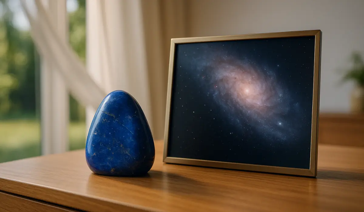 Plusieurs minéraux sont parfois associés symboliquement à la galaxie du triangle. L’améthyste évoquerait le calme, la clarté et la hauteur de vue. La calcédoine bleue rappellerait l’ouverture douce et la communication paisible. Le lapis-lazuli, quant à lui, serait relié à l’intuition et à l’accès à une forme de conscience supérieure. Ces pierres pourraient être employées dans une démarche personnelle de contemplation ou d’ancrage symbolique. Selon certaines traditions, une pierre naturelle suffirait à incarner un lien entre la matière terrestre et l’immensité stellaire.
