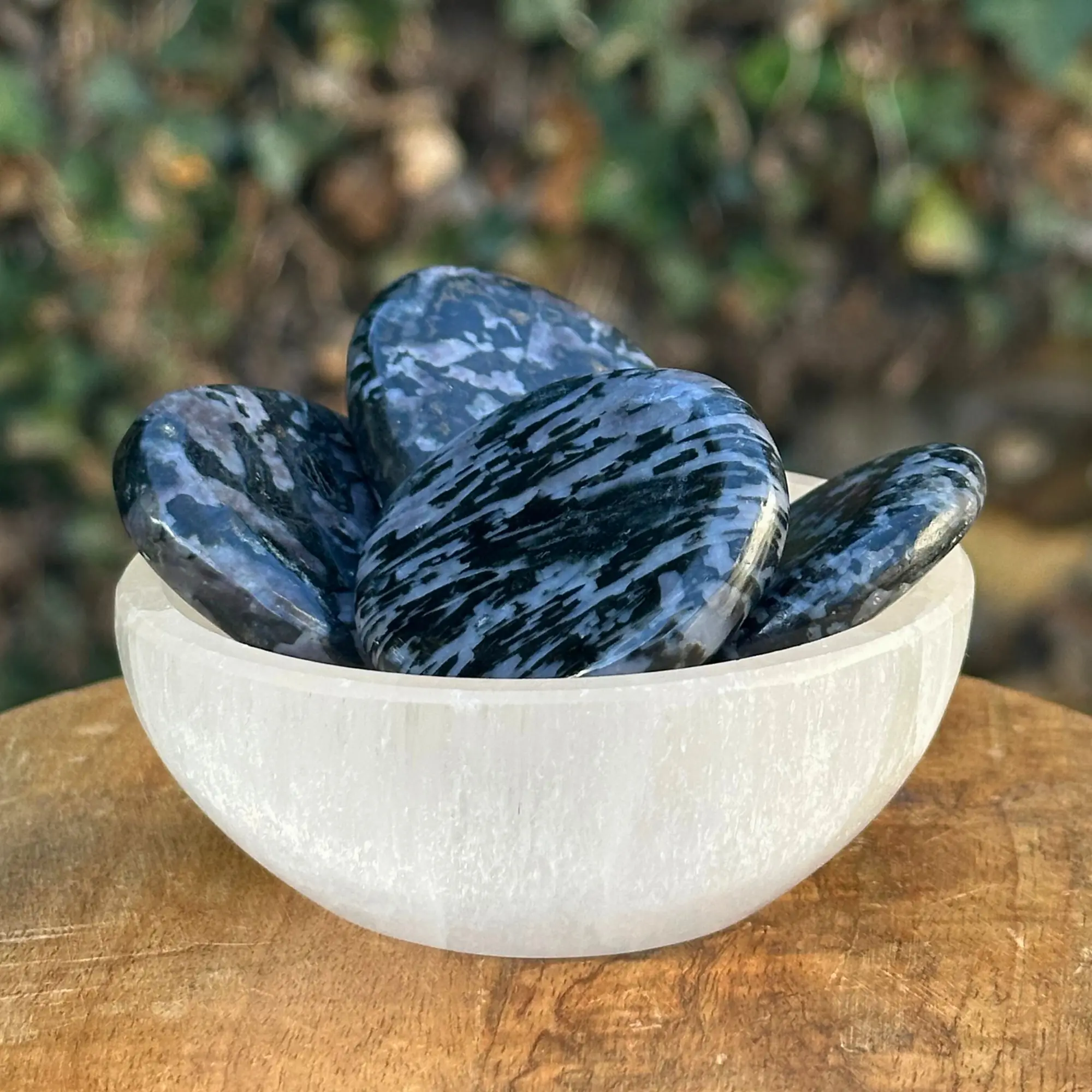 Cette pierre se recharge à la lumière de la lune ou sur un amas de quartz. Le soleil direct est à éviter, car il pourrait altérer sa surface et ses nuances. Le rechargement nocturne favorise une énergie stable et harmonieuse, parfaitement adaptée à sa nature profonde.