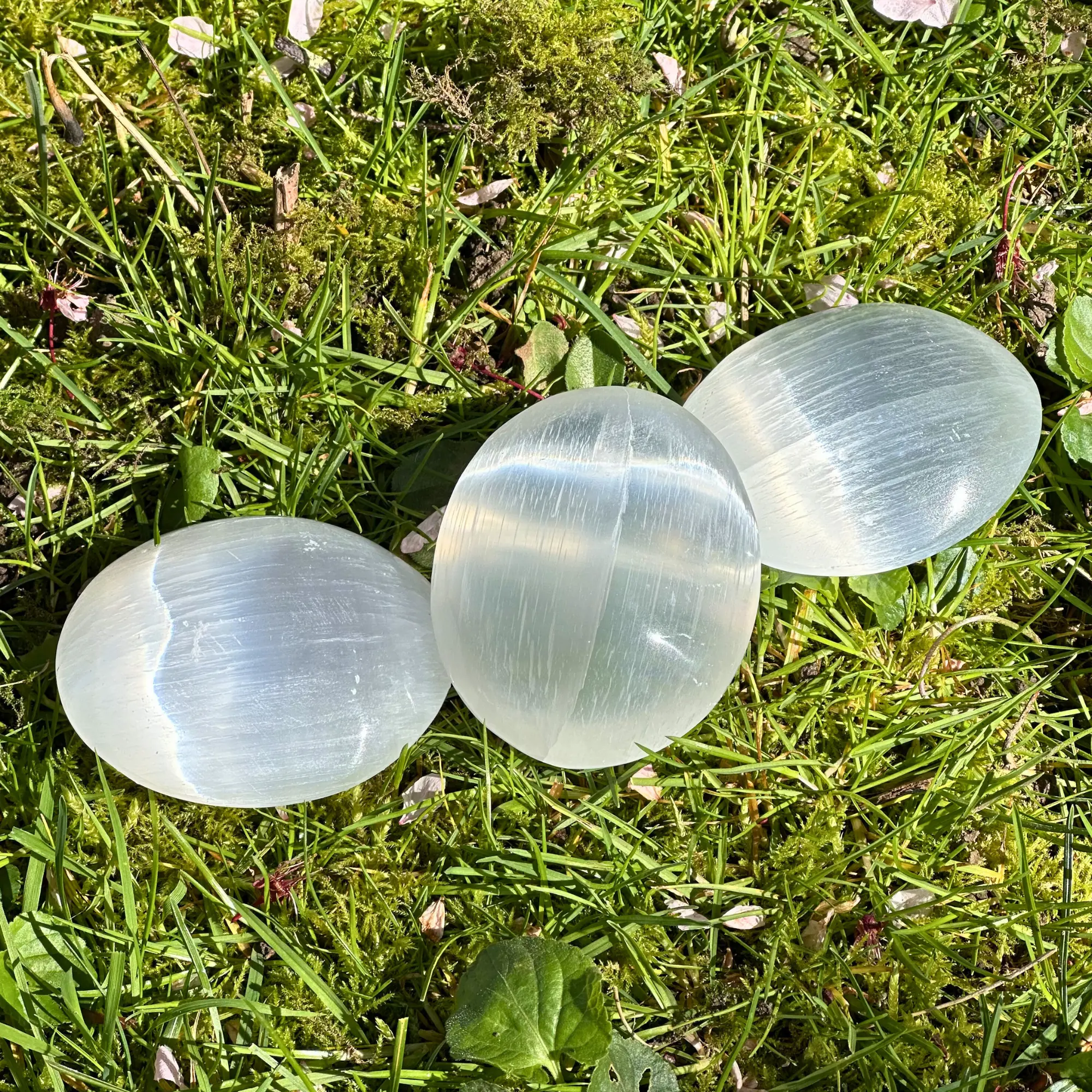 La sélénite se distingue par ses reflets soyeux qui semblent capter et diffuser la lumière. Lorsque l’éclairage change, la pierre révèle différentes nuances allant du blanc pur à une translucidité légèrement argentée. Ces variations naturelles donnent l’impression que la lumière circule à l’intérieur même du minéral.